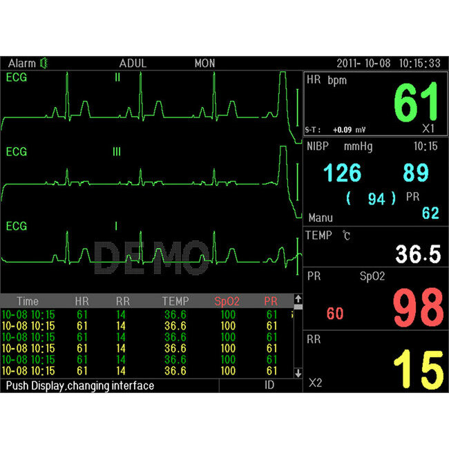 Equipped with a 7’’ high-resolution TFT color screen, it allows simultaneous monitoring of ECG, blood pressure, oxygen saturation, respiration, and body temperature. It provides advanced arrhythmia analysis and ST-segment analysis, ensuring comprehensive and reliable monitoring for hospital departments, clinics, and intensive care units.