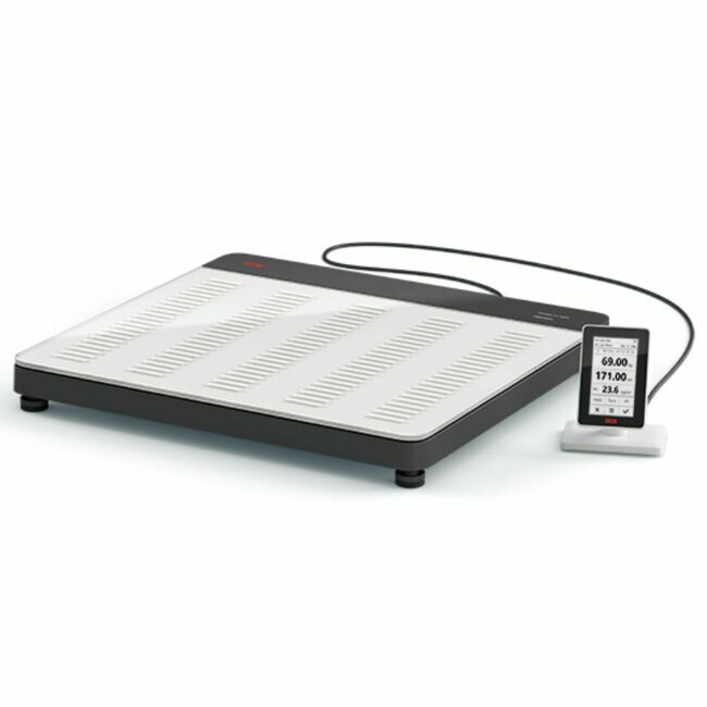 Professional scale compatible with EMR integration (EHR) with ID display and glass platform (unbreakable, non-slip and hygienic).