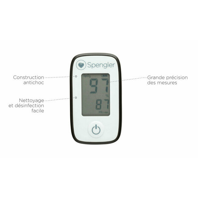 The OxyGo® from Spengler is an ultra-light, ready-to-use digital pulse oximeter designed to accurately measure blood oxygen saturation (SpO2) and heart rate. Ideal for both healthcare professionals and private users, it delivers reliable and instant readings whether in a clinic, at home, or on the go. Compact, shock-resistant, and easy to use, the OxyGo® is the go-to device for efficiently monitoring vital signs.