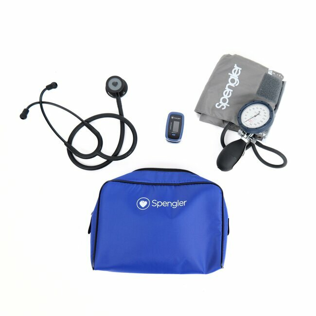 The Spengler Medical Student Pack is a complete, reliable solution designed to support medical students throughout their training. This ready-to-use professional diagnostic kit includes high-quality medical instruments that are used daily in clinical practice: stethoscope, pulse oximeter, manual sphygmomanometer, and carry case. Perfect for lectures, clinical placements, and your first consultations.