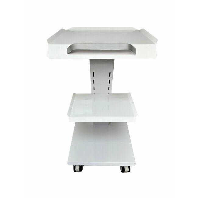 - Heavy-duty steel frame: Made of solid steel, this cart can support up to 40 kg, providing reliable storage space for materials and other equipment. Its smooth white coating ensures an impeccable finish and easy cleaning.