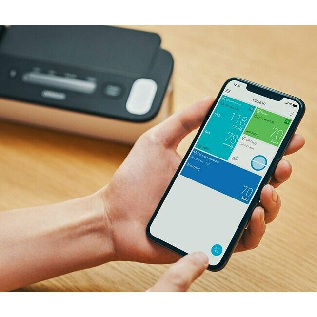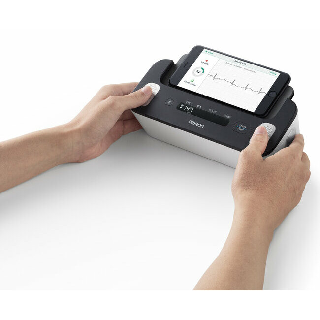 When using the Omron Complete miniature ECG device, your results will be stored in the Omron Connect app for transmission to your doctor.