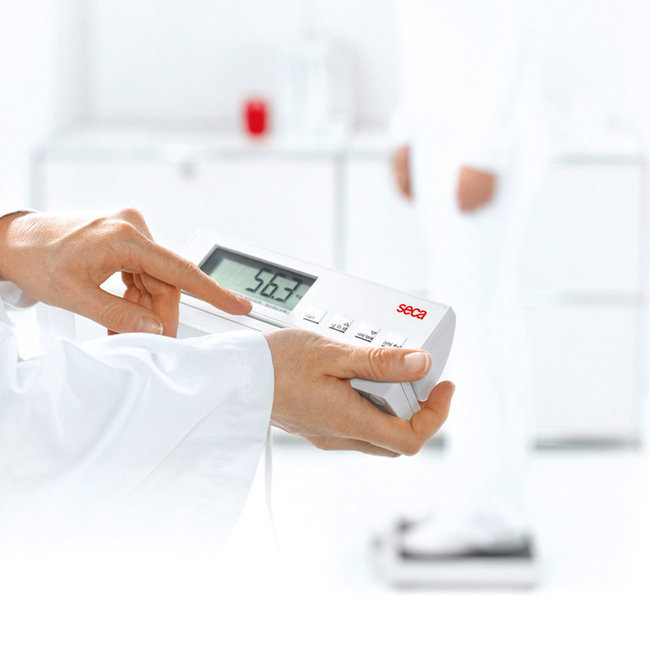 Flat scale with 2m cable remote control display module allowing the display unit to be placed on a table or hung on the wall.Calibration class III.