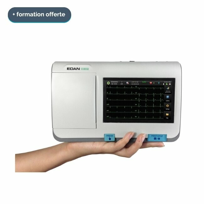 Connected and highly compact, the EDAN SE301 ECG unit features a 5-inch touch screen for a quality electrocardiogram.