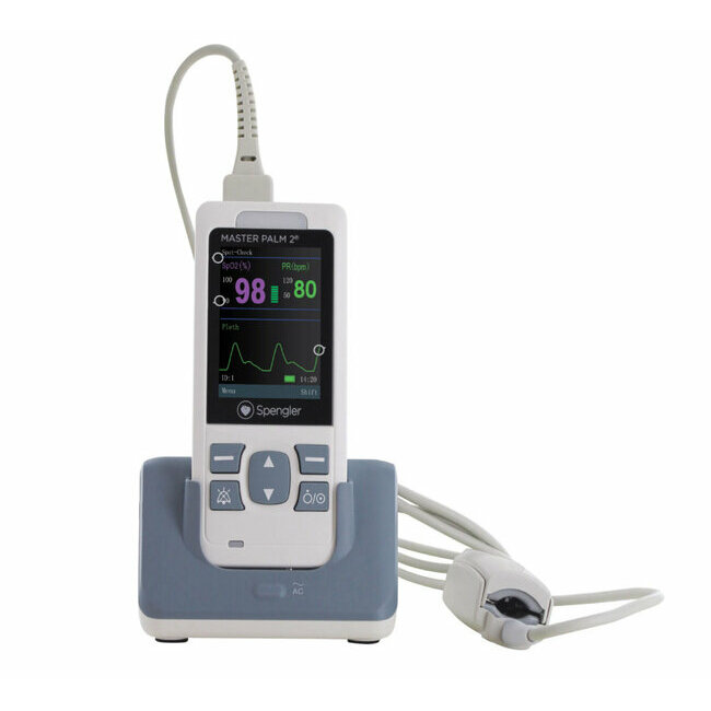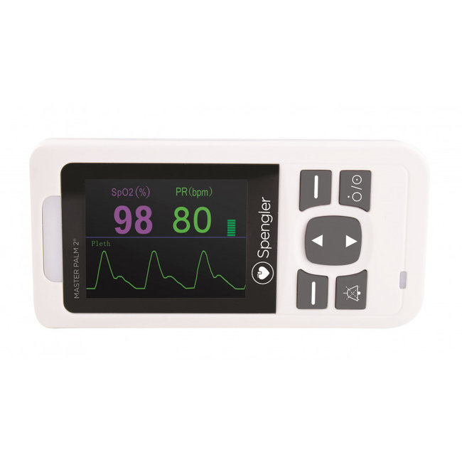 The MASTER PALM 2® portable pulse oximeter by Spengler is a professional-grade medical device designed for fast, accurate, and reliable measurement of oxygen saturation (SpO₂) and pulse rate across all types of patients, from adults to neonates. Its compact design, exceptional battery life, and HD rotatable display make it a versatile tool for healthcare practitioners needing continuous monitoring in various clinical settings.